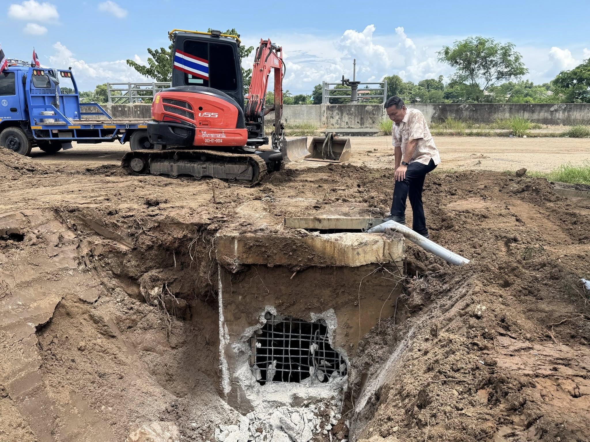 ตรวจติดตามการทำช่องทางระบายน้ำเพิ่ม เพื่อแก้ไขปัญหาน้ำท่วมขัง