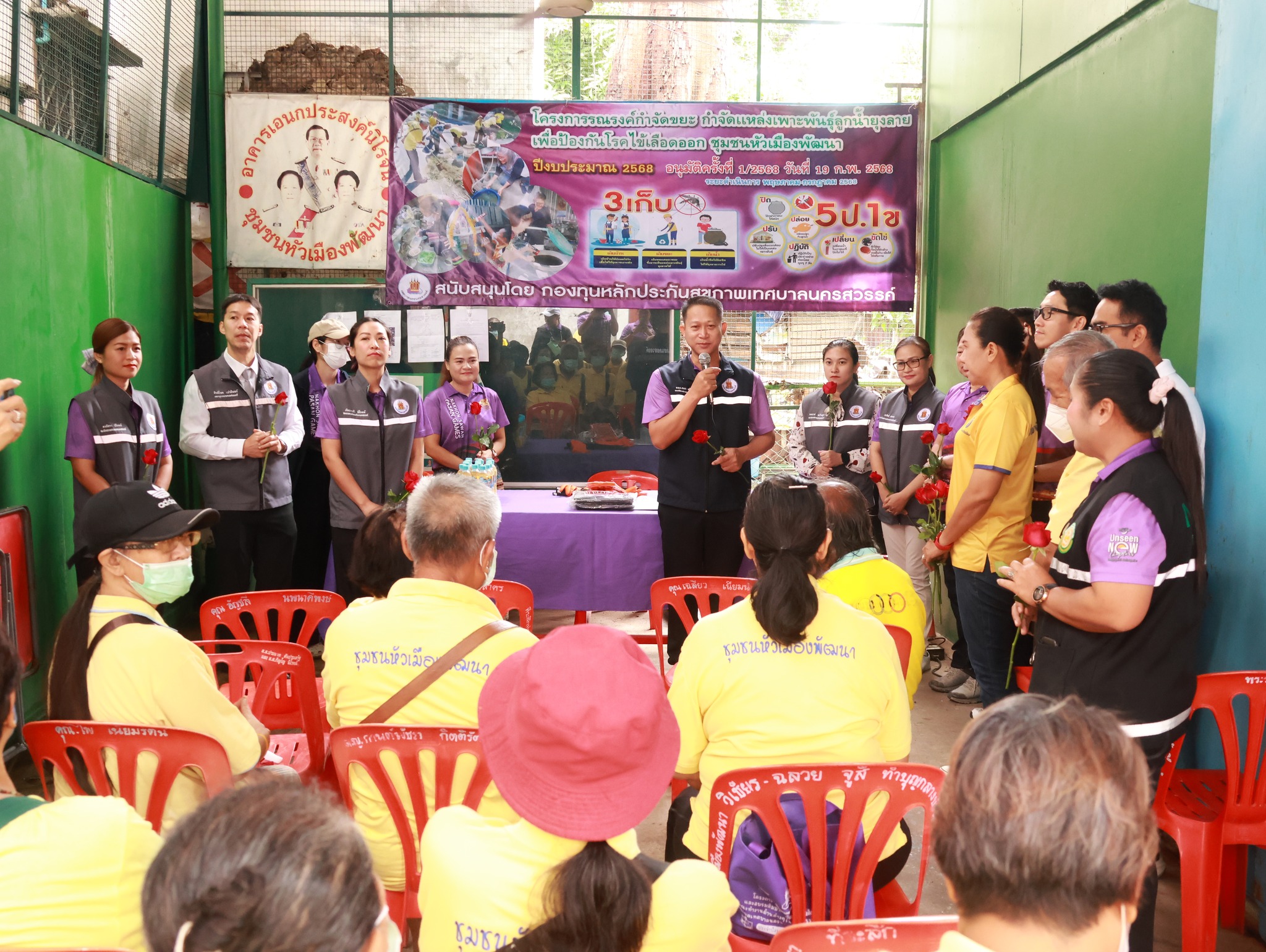 นางสาวภัทราวดี นิโรจน์ รองนายกเทศมนตรีนครนครสวรรค์ พร้อมด้วย สมาชิกสภาเทศบาลนครนครสวรรค์ พันจ่าโทธนกร คล้ายนาค รองปลัดเทศบาล อสม. ชุมชนหัวเมืองพัฒนา เจ้าหน้าที่สำนักสาธารณสุขฯ เทศบาลนครนครสวรรค์ ร่วมกันลงพื้นที่ชุมชนรณรงค์ประชาสัมพันธ์ พร้อมทำลายแหล่งเพาะพันธุ์ลูกน้ำยุงลายสาเหตุของไข้เลือดออก โดยใช้ มาตรการ 5 ป 1 ข 3 เก็บ 3 โรค