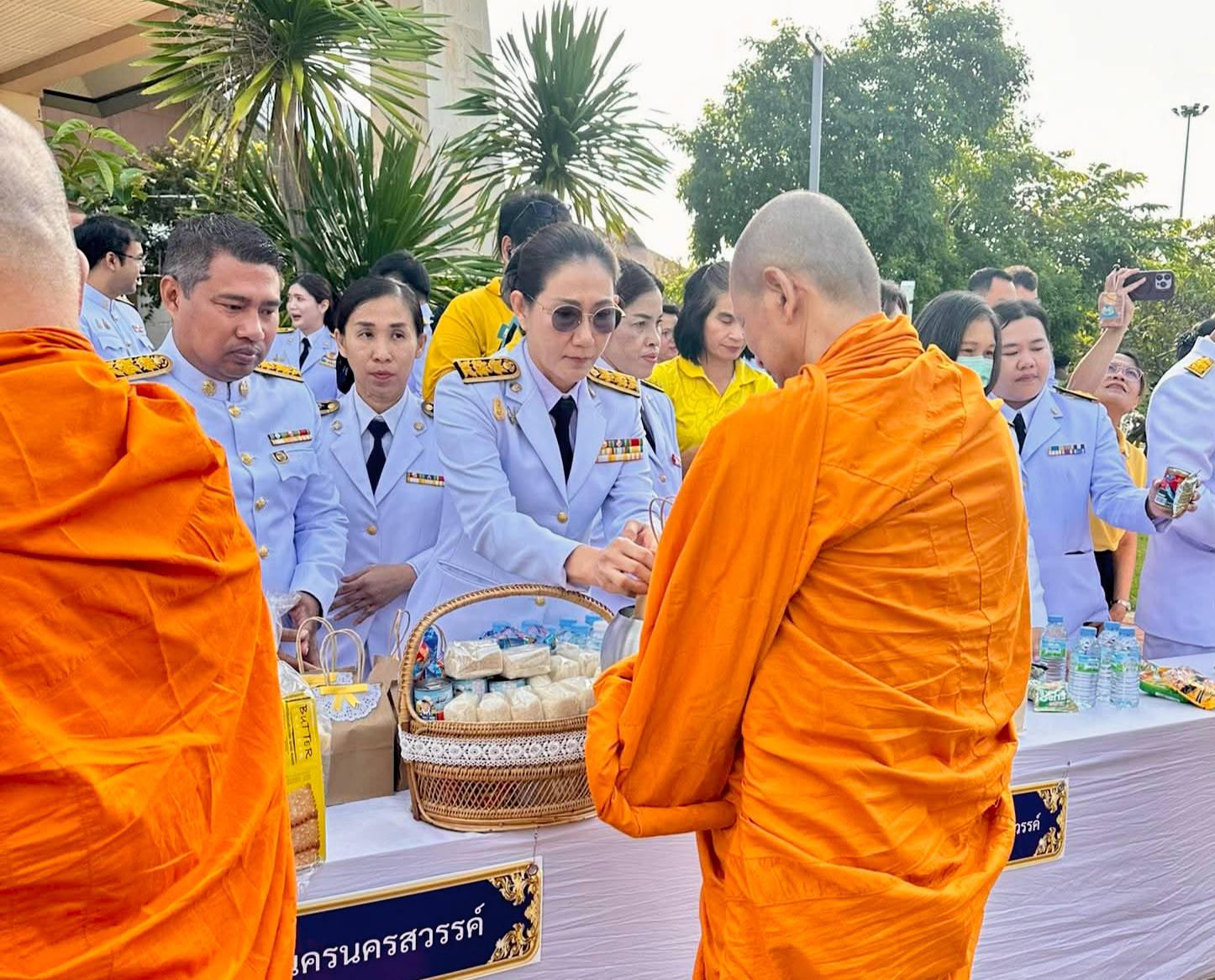 จังหวัดนครสวรรค์ ประกอบพิธีสวดพระพุทธมนต์ทำบุญตักบาตรถวายพระราชกุศล พิธีวางพวงมาลาและถวายราชสดุดี เนื่องในวันนวมินทรมหาราช 13 ตุลาคม 2568