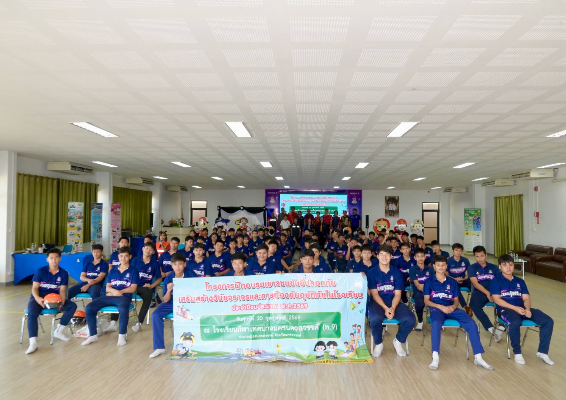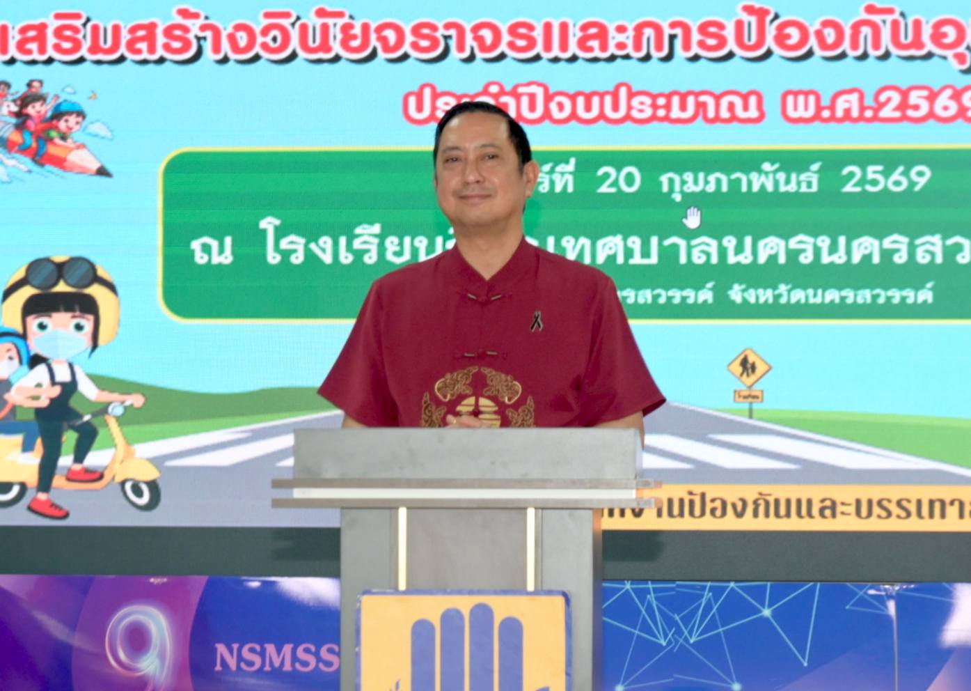 วันศุกร์ที่ 20 กุมภาพันธ์ 2569 เวลา 11.00 น. ว่าที่ร้อยตรีศราวุธ จันทวงศ์ รองผู้ว่าราชการจังหวัดนครสวรรค์ เป็นประธานเปิด โครงการฝึกอบรมเยาวชนขับขี่ปลอดภัยเสริมสร้างวินัยจราจร และการป้องกันอุบัติภัยในโรงเรียน ประจำปีงบประมาณ พ.ศ. 2569 จังหวัดนครสวรรค์ ณ โรงเรียนกีฬาเทศบาลนครนครสวรรค์ (ท.9) พร้อมด้วย นายสิทธิโชค เปาอินทร์ รองนายกเทศมนตรีนครนครสวรรค์ นายสวัสดิ์ ชะนะพิน ผู้อำนวยการสำนักการศึกษา นายอดุลย์ ปรัชญาวุฒิรัตน์ ผู้อำนวยการโรงเรียนกีฬาเทศบาลนครนครสวรรค์ ตลอดจนหน่วยงานที่เกี่ยวข้อง ร่วมในกิจกรรม โดยมีหัวหน้าสำนักงานป้องกันและบรรเทาสาธารณภัยจังหวัดนครสวรรค์ เป็นผู้กล่าวรายงาน